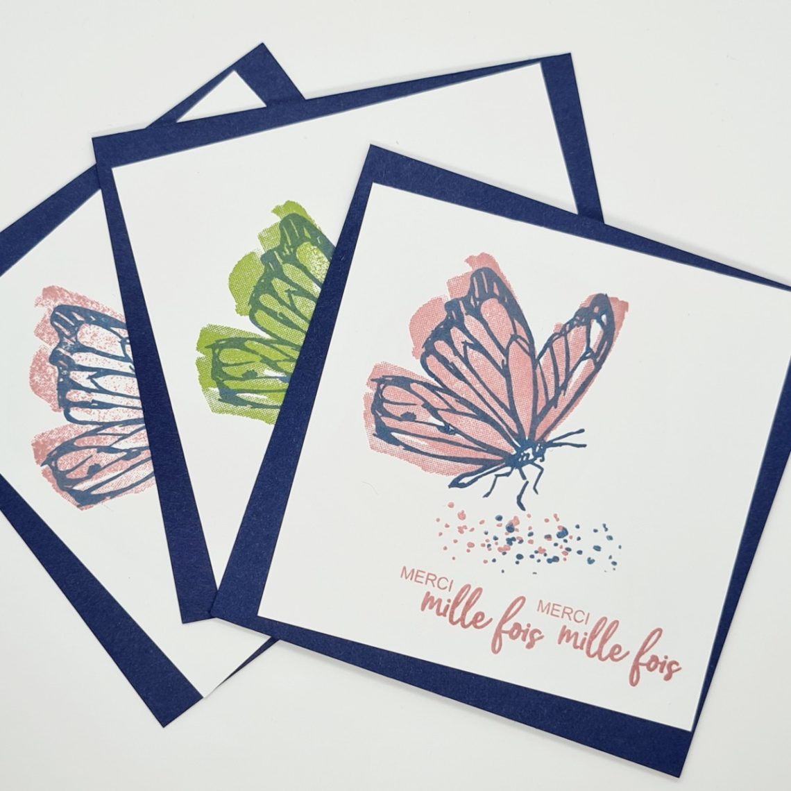 Voici des cartes que j’ai glissé à l’intérieur de mes envois de catalogues printemps-été Stampin’up ! Au passage si vous souhaitez en recevoir un n’hésitez pas à me contacter : marie@unjourdefete.fr