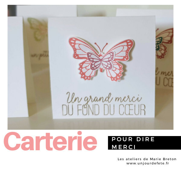Puis un set de tampons, de l’encre, une perforatrice papillons et c’est parti !