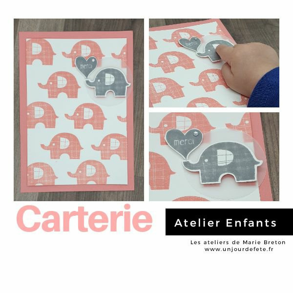 Bonjour, Toujours sur le thème des éléphants, un petit cartable à réaliser pour y loger des post-it ou petit carnet de notes. Un projet tout particulièrement dédié aux enfants. Nous pouvons réaliser ce projet lors d’atelier parent-enfant chez moi ou à votre domicile lors d’un anniversaire. A bientôt.