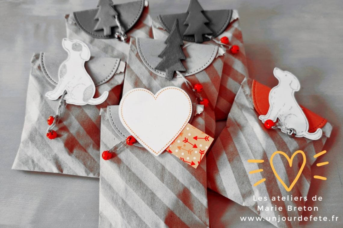 Bonjour, Voici de petits sachets de gourmandises customisés. Un petit sac en papier craft, une jolie étiquette et des grelots bien sûr ! Et le tour est joué ! A condition d’ajouter à l’intérieur un sucre d’orge et nous voilà prêt pour fêter Noël !! Je vous souhaite unjoyeux réveillon de Noël!